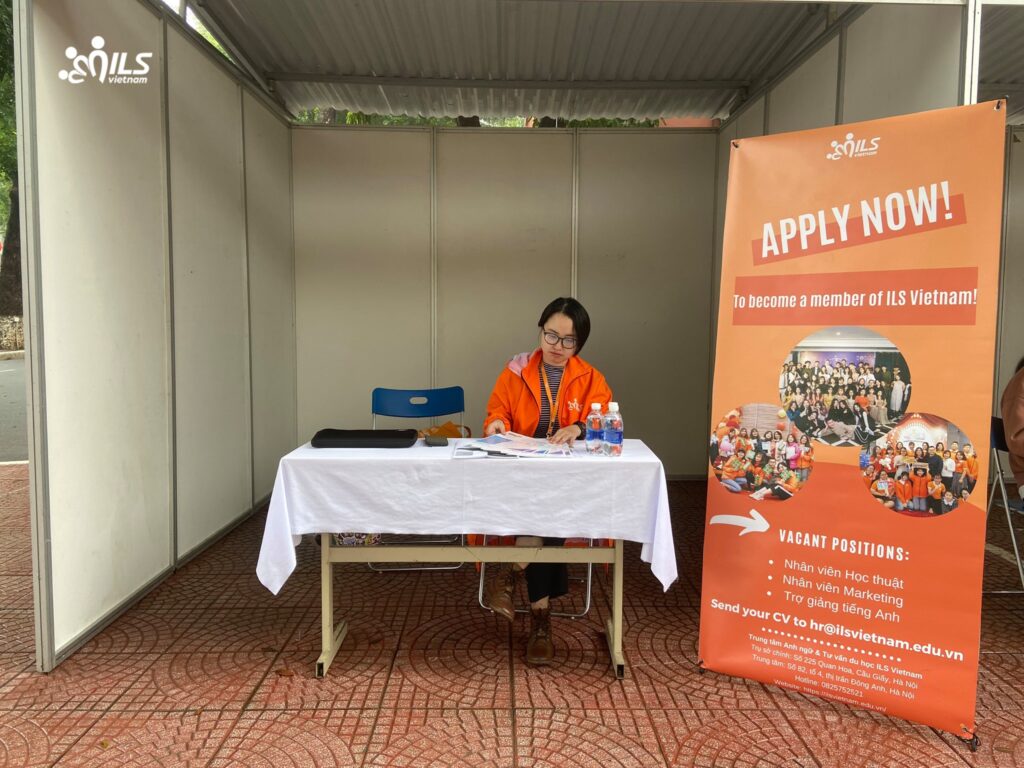 Cũng trực tiếp tham gia ” Ngày hội việc làm”, ILS Vietnam đã được Ban tổ chức sắp xếp đặt một gian trại để các bạn sinh viên tham quan và tìm hiều về doanh nghiệp của chúng mình. Chúng mình cũng có những phần quà rất dễ thương cho các bạn sinh viên trong ngày hội lầ n này! ILS rất mong chờ hoạt động lần này có thể phát hiện ra những ứng viên tiềm năng, có đam mê và sức sáng tạo để gia nhập ngôi nhà Tiếng Anh của chúng mình.